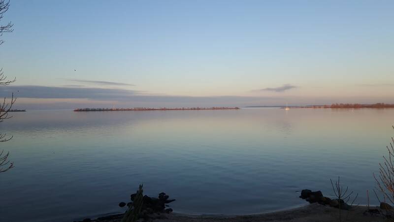 Ik maak weleens een fietstochtje langs Muiden en Muiderberg, en toen ik daar laatst een dijk beklom om uit te kijken over het IJmeer zag ik deze drie kunstmatige eilandjes liggen, van links naar rechts “De Drost”, “Warenar” en “Hooft”.